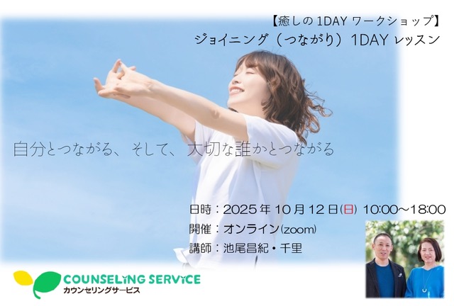 10/12(日)に開催される池尾昌紀・千里カウンセラーの癒しの1DAYワークショップ。